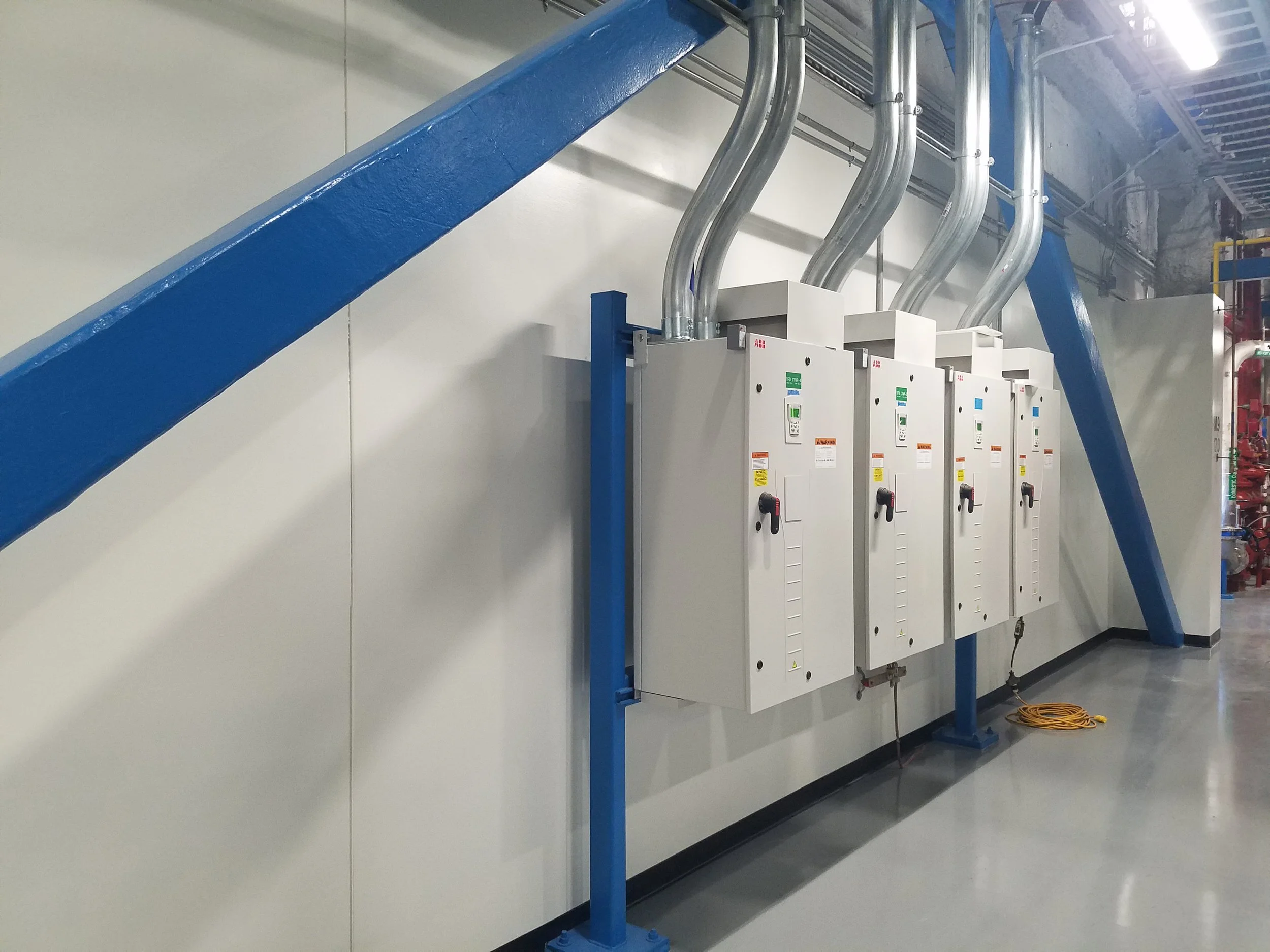 Installation of a new 5000-amps switchboard and associated branch circuits to support a new computer system for NOAA at ORNL. Due to facility constraints, switchboards and power distribution equipment were required to be in closer proximity. This required an engineered solution using custom fused switch panelboards to protect computer cabinets. In addition, in-line inductors were utilized to limit harmonics from VFD’s within in-row cooling equipment.